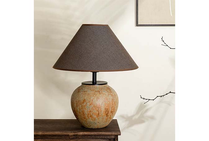 Wabi-Sabi Ceramic Jar Lamp – Handwoven Linen Shade for Hotels & Zen Living Rooms