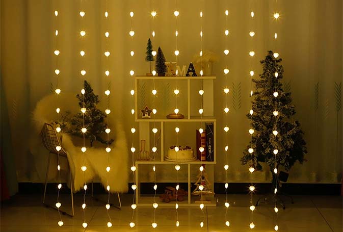LED Heart Curtain Lights – Waterproof Romantic Bedroom Decor with 8 Modes for Christmas & Daily Ambiance